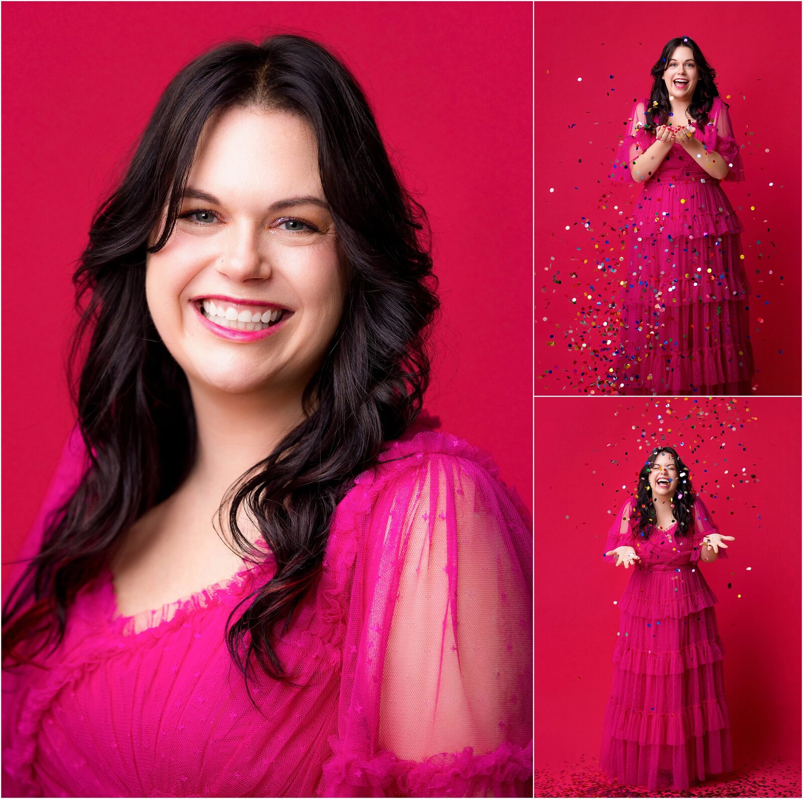 Dress in the same tone as your backdrop for a clean, monochromatic look that pops.
